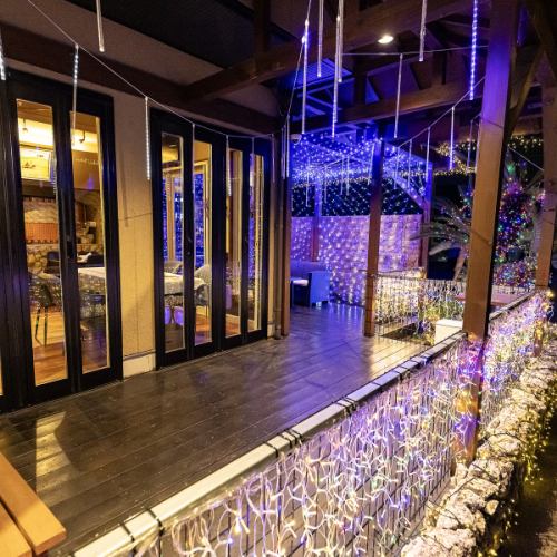 しっかりと脱走防止対策を施したテラス席では、ワンちゃんをリードなしで自由に歩き回らせてあげることができます。夜を彩る幻想的なイルミネーションや、四季折々の装飾に包まれる特別な空間。愛犬と一緒に、季節の移ろいを感じてみませんか?心地よい風や光に包まれながら、心ほどける至福のひとときをお過ごしください。
